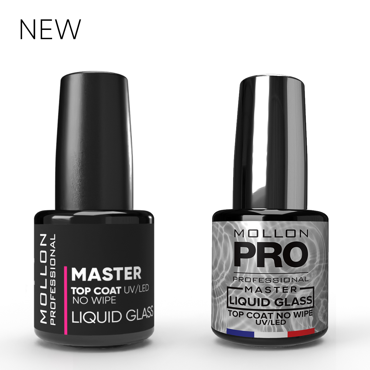MOLLON MASTER TOP COAT LIQUID GLASS 12 ml - top UV/LED samopoziomujący, nadający efekt szklanej powierzchni z super połyskiem bez warstwy dyspresyjnej